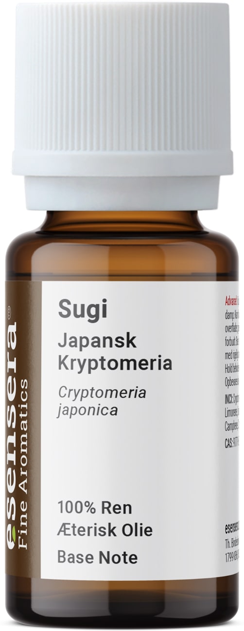 Den æteriske olie i Sugi-træets blade, kviste og træ anvendes vidt i roomsprays, japansk inspireret parfume og sågar i japansk sauna og dampbad med inspiration i Shinrin-Yoku. Videnskabeligt er der tegn på, at inhalation af let fordampelige aromatiske forbindelser i Sugiolie kan påvirke humøret positivt og midlertidigt dæmpe sympatisk nerveaktivitet. Eksperimenter med Sugiaroma i aerosoler har vist ændringer i stressmarkører og en rapporteret effekt af øget følelse af ro1. Eksponering for Phytoncider i luften, der er kemiske bestanddele i træernes eget forsvarssystem mod bakterier og insekter, er i feltstudier af Skovbadning sat i forbindelse med forbedrede NK-celleparametre, der er vigtige for vores immunsystem 2. Sugiolie i diffuseren er perfekt til afslappende aftenritualer, meditation eller arbejdsrum.