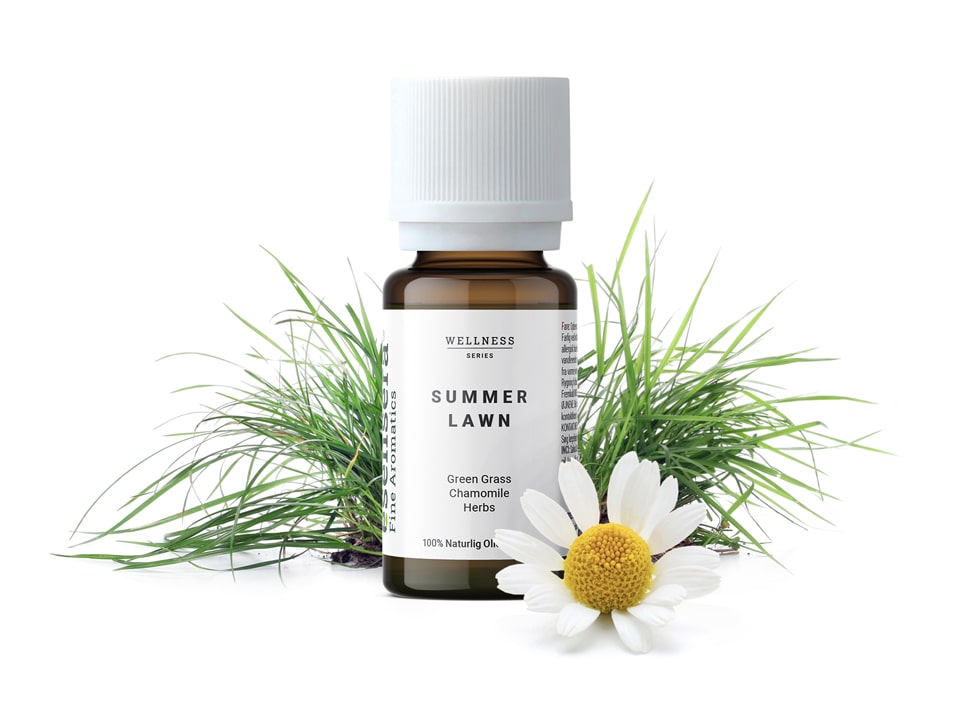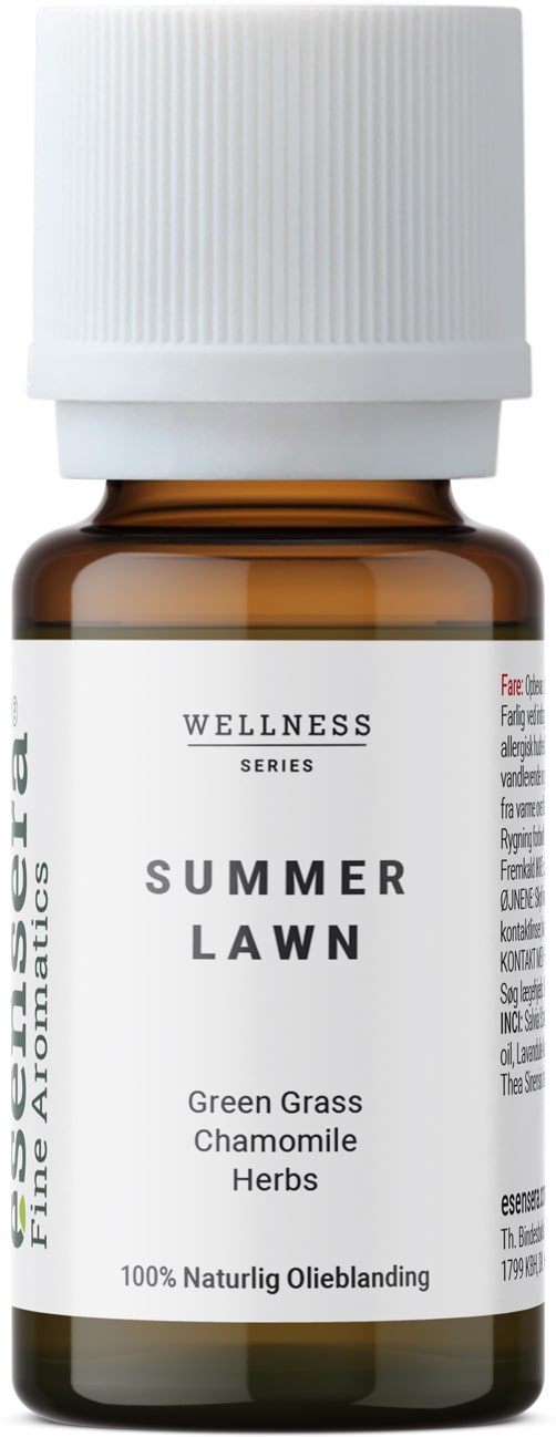 Summer Lawn er duften af frodig sommer, nyslået græs, lavendel i solen, grønne æbler, urtehave og kamillete, og er, ligesom vores øvrige olieblandinger, fremstillet af 100% rene, naturlige ingredienser. Cis-3-hexenol udvundet og isoleret fra Agermynte udgør rygraden i denne olieblanding, omkring hvilken en sofistikeret blanding af æteriske olier, absolut og anden ren, naturlig aroma er bygget op.