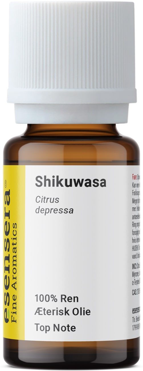 Den æteriske olie af skallen har moderne anvendelse i drikke, konfekt, kosmetik og til diffusion for sine friske Limonene- og γ-Terpinene noter. Faktisk henviser nyere undersøgelser til, at forskellige aromatisk afgørende terpener i Shikuwasaolie kan dæmpe stressrelaterede markører og have antiinflammatoriske egenskaber i prækliniske modeller1. Aromatisk opleves olien som værende meget ren, luksuriøs og som et meget behageligt balanceret grønt alternativ til Yuzu.