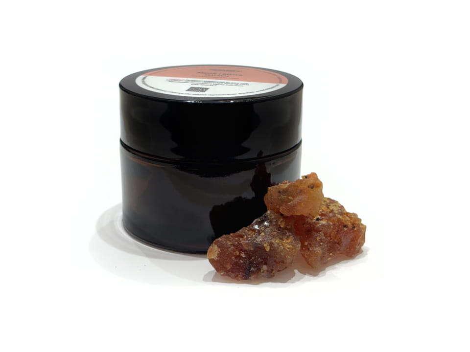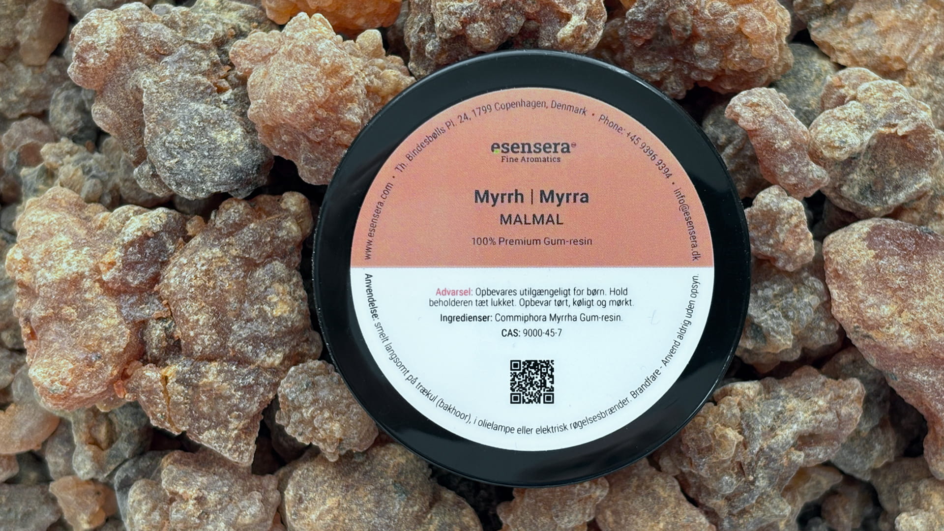 Myrra, også kaldet Malmal, er blandt de ældste kendte aromatiske resiner og har gennem historien været anvendt i ritualer, medicinske salver, balsamering og parfumeri. Denne Myrra stammer fra Somalia, hvor Commiphora-arter vokser under ekstreme forhold, hvilket resulterer i resin med høj aromatisk koncentration.