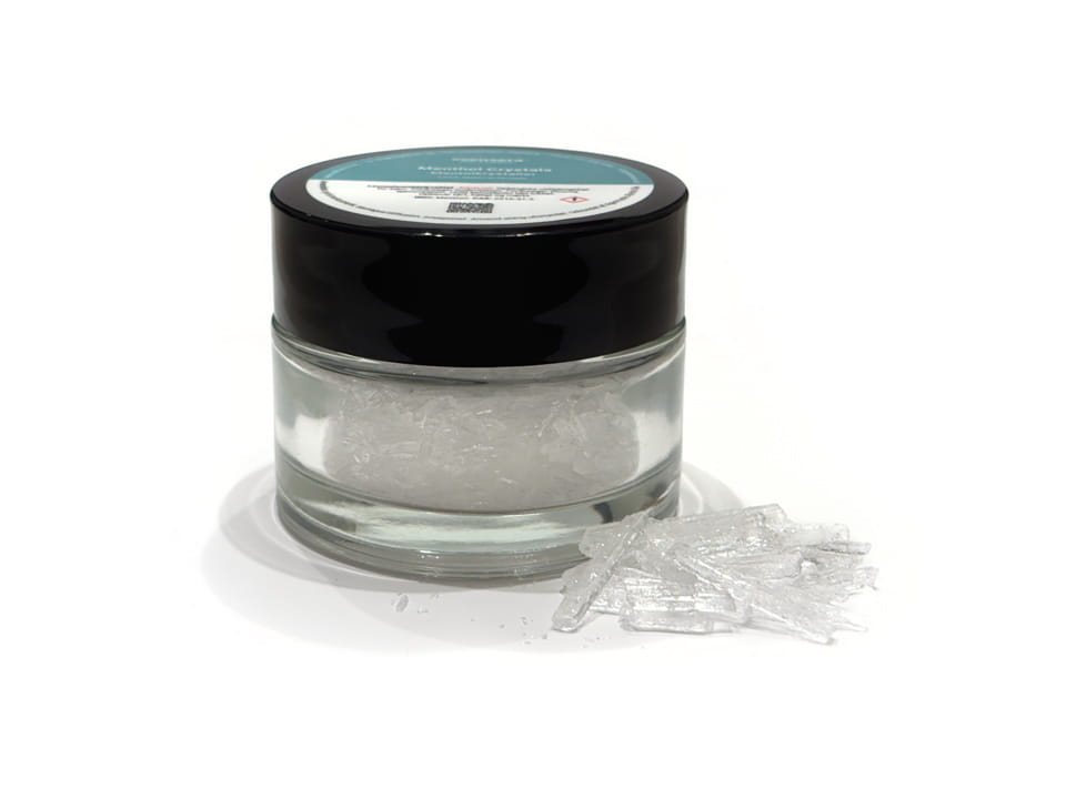 Naturlige Mentolkrystaller af levnedsmiddelkvalitet udvundet af agermynteolie. Bidrager et betydeligt køligt løft.